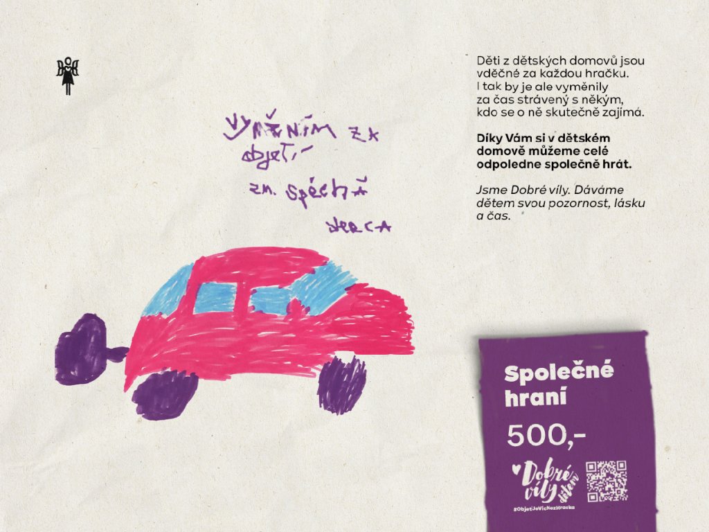 Díky Vašemu finančnímu daru si můžeme v dětském domově s dětmi např. celé odpoledne společně hrát! Výběrem tohoto voucheru a jeho zaplacením darujete zvolenou finanční částku na konto Dobré víly dětem, z.s. a podpoříte děti v dětských domovech.